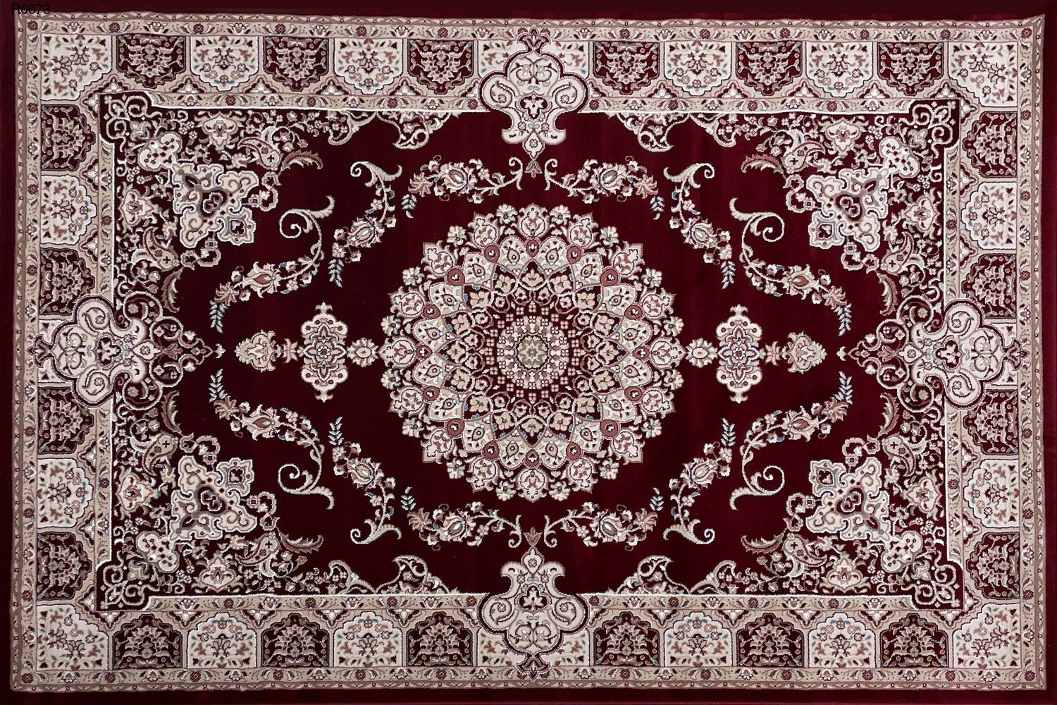 Thảm phòng khách R0073 là dòng thảm trang trí cao cấp hoa văn cổ điển rất sang trọng. Dòng thảm này là dòng thảm sợi ngắn nhưng rất mềm mại, mật độ sợi thảm rất cao nên bề mặt thảm rất mịn làm tăng lên giá trị của tấm thảm.
