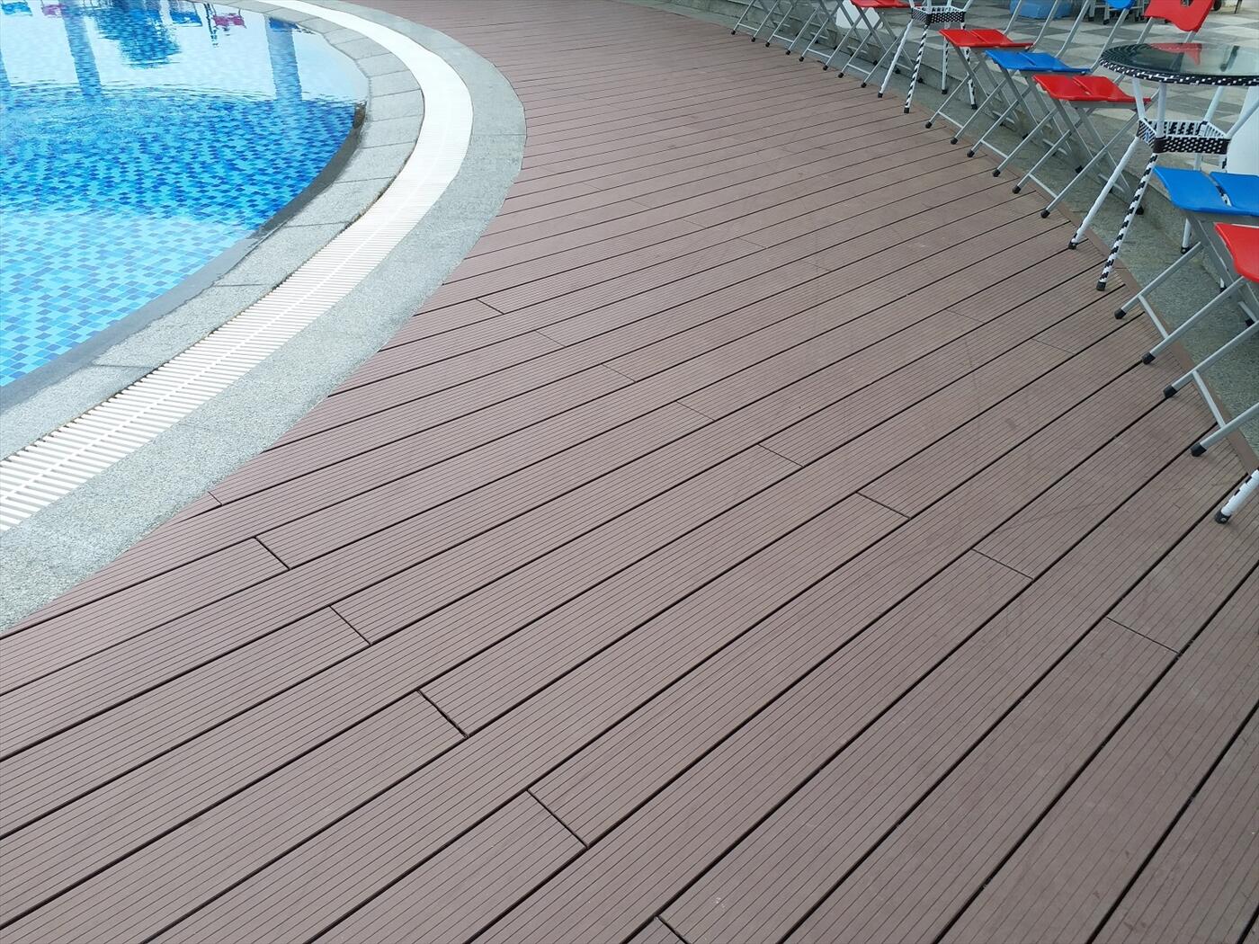 Sàn gỗ bể bơi thường sử dụng làm sàn cho khu vực bể bơi trong khách sạn, biệt thự, resort và các công trình cao cấp khác để tăng sự sang trọng. Sử dụng gỗ nhựa composite ngoài trời để lót sàn gỗ bể bơi rất bền, đẹp và hoàn toàn chịu được nắng mưa, thay thế hoàn toàn gỗ tự nhiên.
