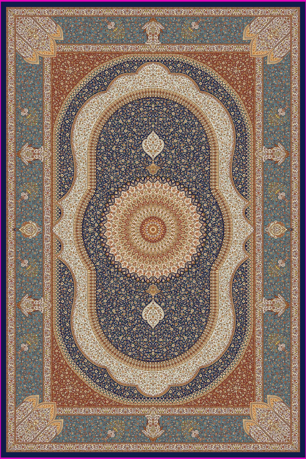 | Hoa văn: | Hoa văn phức tạp và tinh xảo, thường lấy cảm hứng từ thiên nhiên, kiến trúc và văn hóa Ba Tư |